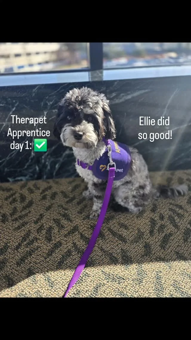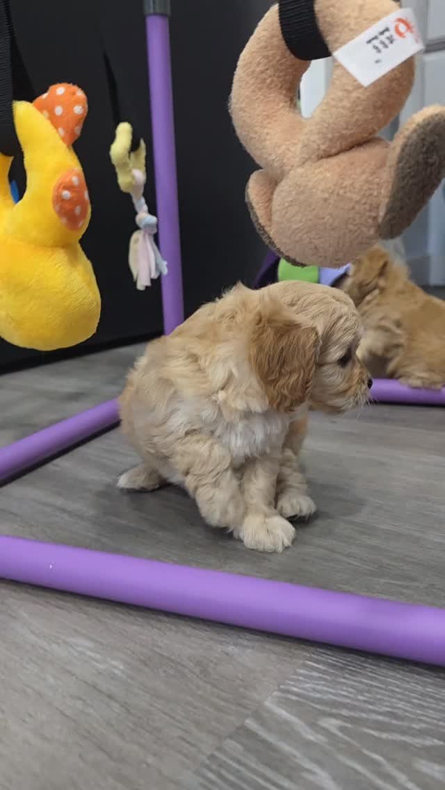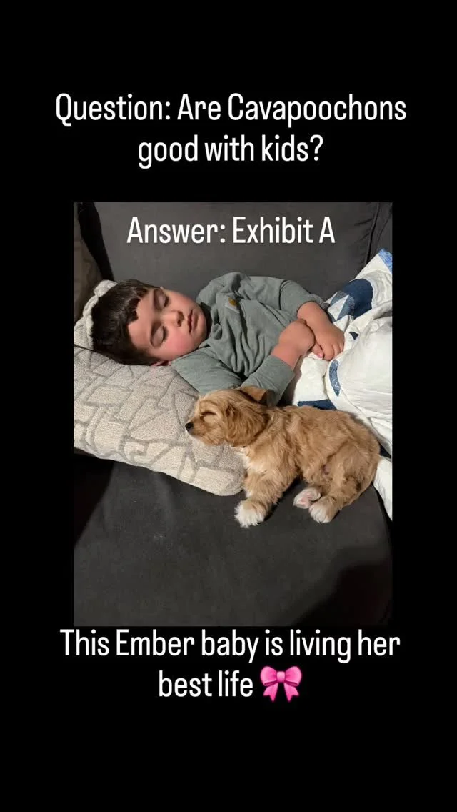 Blue circular badge with white text that reads "Respected Responsible Breeding Program," "Good Breeder," "Good Dog," and "GoodDog.com." There is a paw print in the center and a ribbon at the bottom with "Cavapoochon Central."